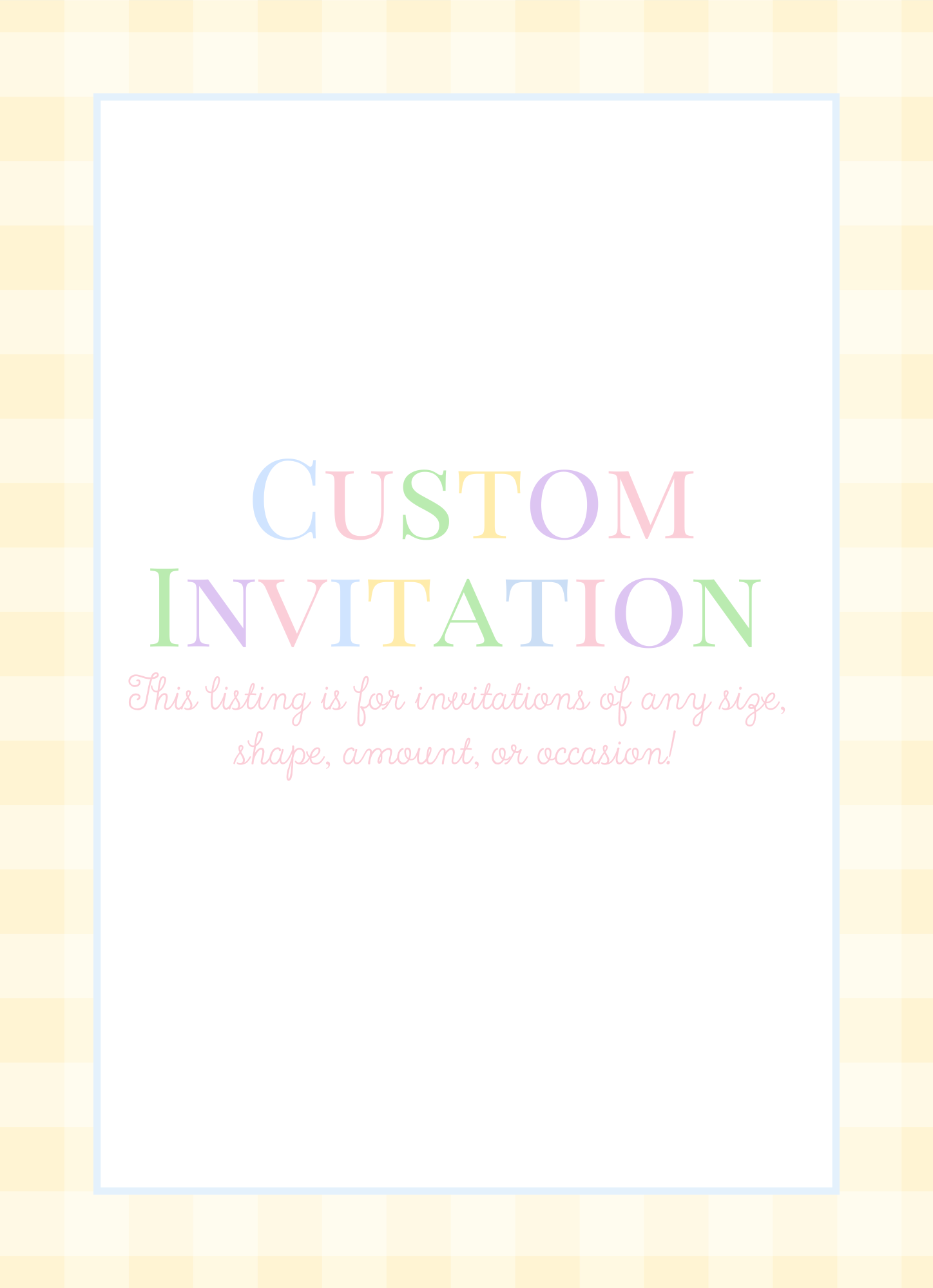 Once you purchase this listing, you will be contacted within 48 hours to begin the design process. Include any information you have (details as well as theme, any wording inspiration, and general "vibe") in the comments section at checkout so I have an idea of need by date as well as general design scheme!