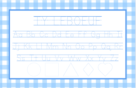 Laminated placemats are 12x18 inches and come double-sided! The reverse side can be a different design entirely or a coordinating back design (as pictured) with tracing lines for name, alphabet, shapes, and numbers or any combination of these! Leave the reverse side design choice and any other necessary information or selections in the "additional comments" section on the checkout page!